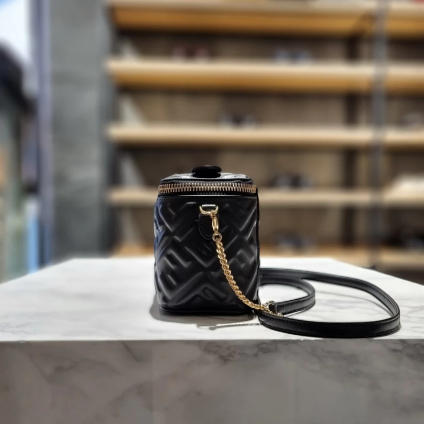 Fendi 8BS108 Vanity FF 壓紋納帕軟皮迷你包 黑色【新年限時特賣】