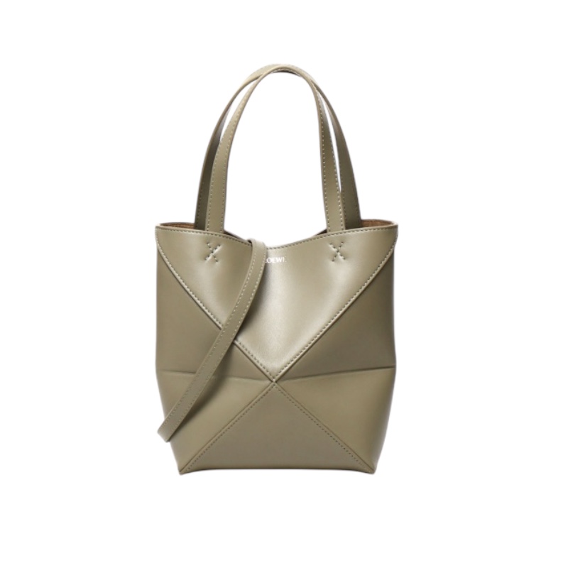Loewe 迷你亮面小牛皮 Puzzle Fold 折疊托特包 尤加利綠色