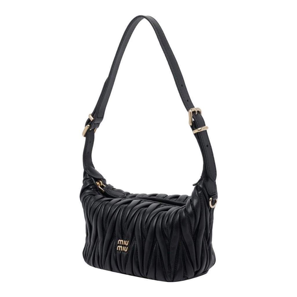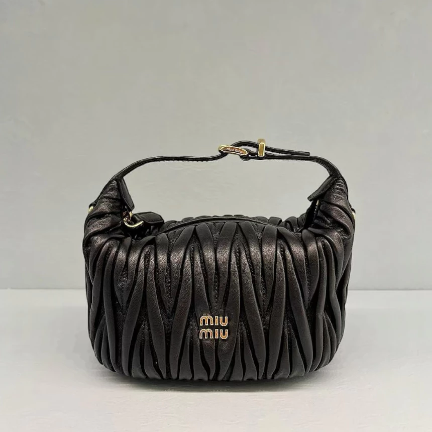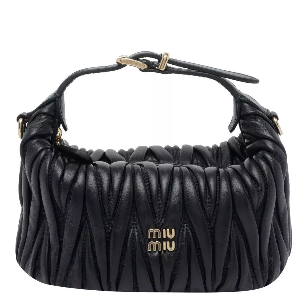 Miu Miu 5BP100 Matelassé 納帕軟皮皺摺化妝飯盒包 可延長肩帶/黑色