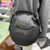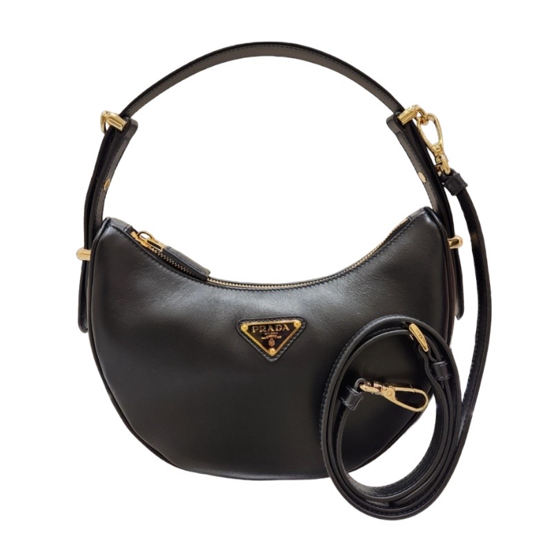 Prada 1BC194 Arque 皮革彎月包 付長肩帶 黑色