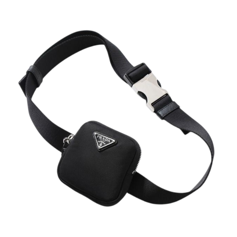 Prada 1CN076 女款編織尼龍腰帶 附可拆卸萬用袋可放信用卡/AirPods 黑色 腰帶長103公分