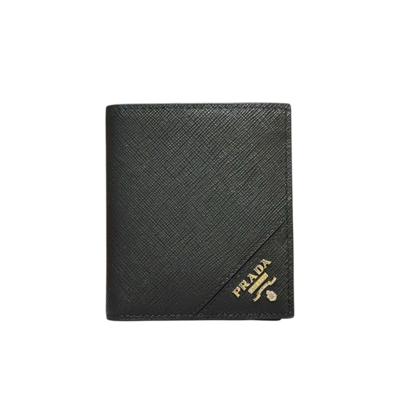 Prada男款Saffiano皮革短夾,內設8卡槽及2紙鈔層,