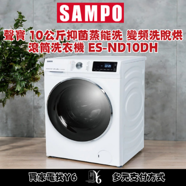 SAMPO抑菌能洗洗脫烘蒸 四合一滾筒變頻洗衣機洗10KG/烘6KGSAMPO節能標章ES-ND10DH
