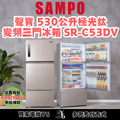 SAMPO 聲寶 530公升極光鈦變頻三門冰箱 SR-C53DV